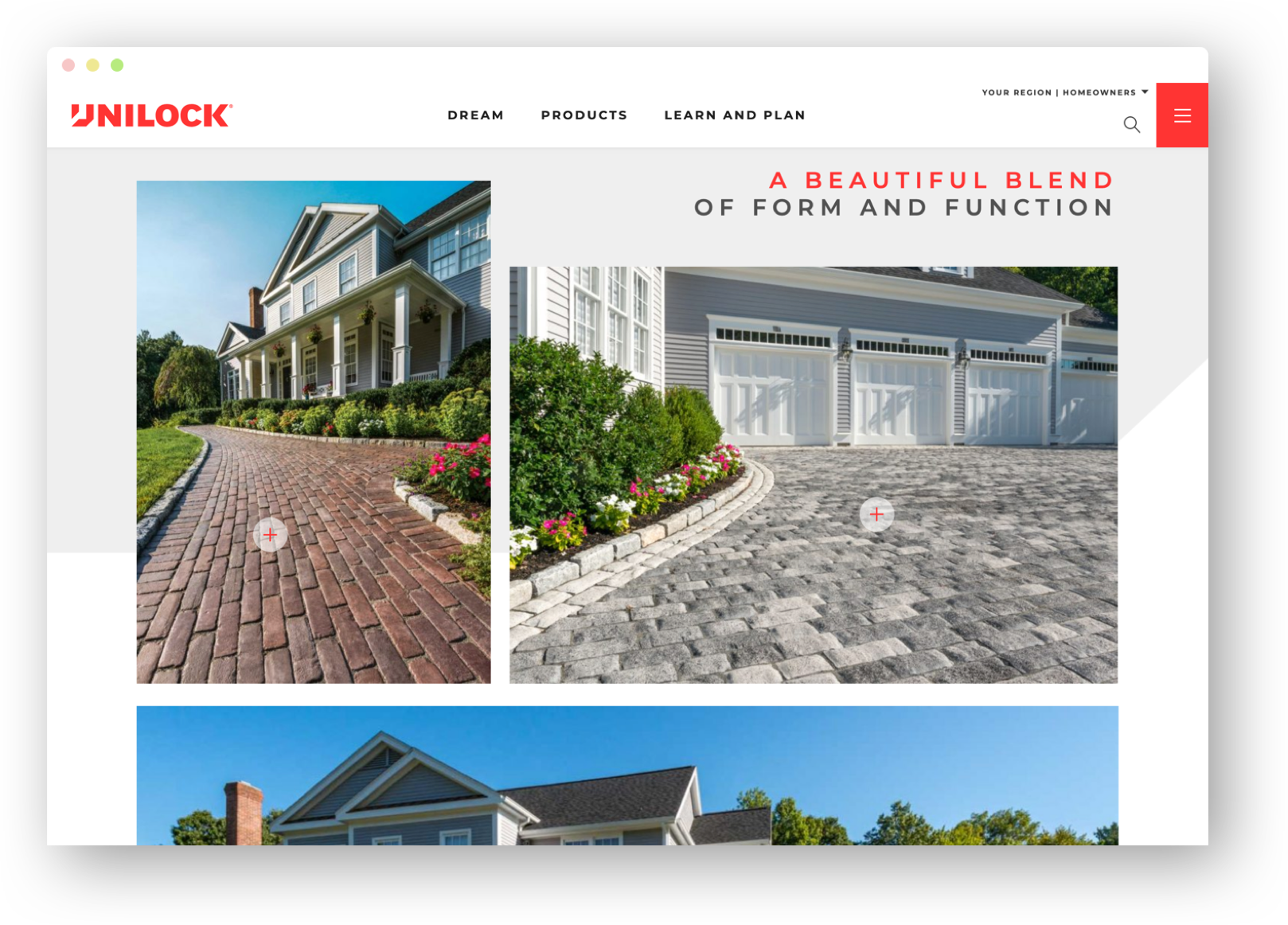 The previous site didn’t do justice to Unilock’s products and the work of contractors, so we addressed that with large, bold photography and plenty of whitespace to keep things breathable. On the content-rich product pages, we went through several refinements to reach that perfect balance of technical information and inspiring visuals. Everything is tied together with Unilock’s distinct branding.